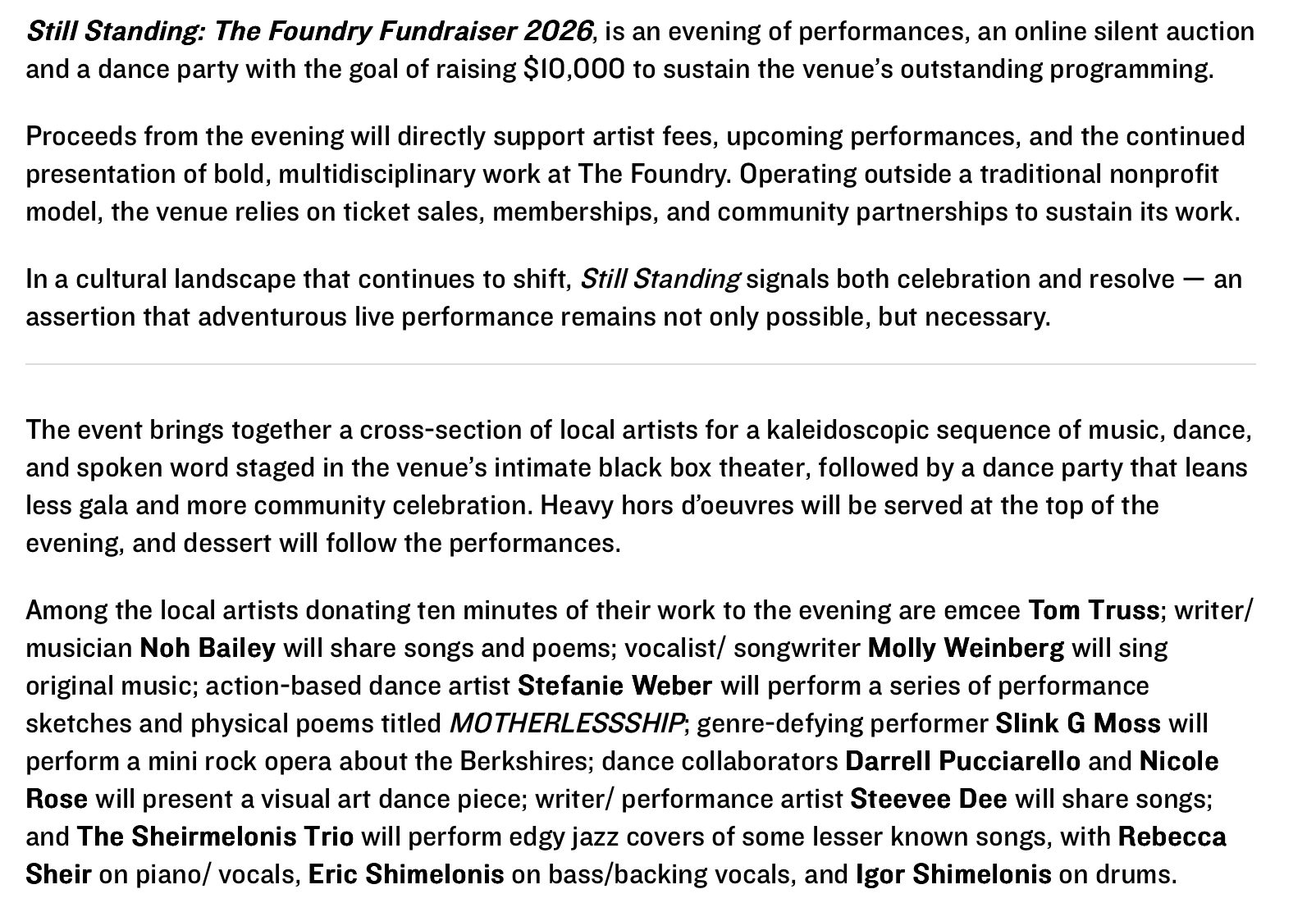 Tickets are $28 and can be purchased on the Foundry’s website. More information about the event TBA soon! Stay tuned!